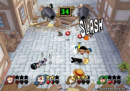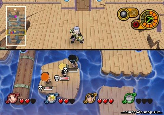 Описание: One Piece: Pirates Carnival, сборник мини-игр а-ля Mario Party, но с участием пиратов Соломенной шляпы. В Pirates Carnival собрано три десятка мини-игр; они рассчитаны на четырёх участников и (в теории) должны обеспечить весёлый вечер дружной компании отдыхающих анимешников. В начале игры каждый участник выбирает по пирату, который будет представлять его в грядущих испытаниях. Выбор чисто косметический, и героический доходяга Усопп в бою не уступит ни Ророноа «Рисовые шарики» Зоро, ни бабнику и курильщику Санджи. Начинается игра, и на экране появляется виртуальный стол с виртуальной картой, разделенной на клетки. Клетки бывают трех типов: Event (становится вашей за здорово живёшь), Davy back fight (дает шанс захватить уже занятую клетку) или Minigame (очевидно, мини-игра). Последние, в свою очередь, делятся на два вида: обычные и капитанские. В обычных мини-играх все участники равны, в капитанских один становится злодеем из аниме (например, Арлонгом или Дон Кригом) и старается навалять остальным. Как правило, капитанские мини-игры интереснее обычных, но и они приедаются прискорбно быстро. Участники делают ходы по очереди, и общая цель - захватить большую часть доски. |