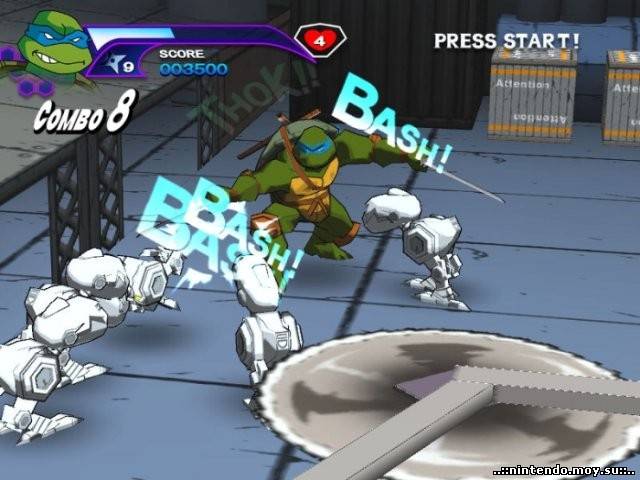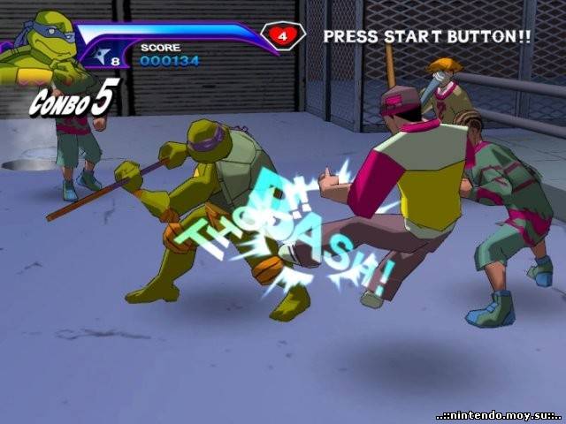 Описание: Леонардо, Микеланджело, Донателло, Рафаэль, Шредер, Эйприл О’Нил, учитель Сплинтер и даже Кейси Джонс (странноватый товарищ в хоккейном обмундировании) вернулись и машут вам полигональными руками с жидкокристаллического экрана. Teenage Mutant Ninja Turtles, как нетрудно догадаться, является классической консольной аркадой со всеми вытекающими: бонусами, комбо, секретными персонажами и волшебной возможностью играть вдвоем на одном экране. Выбираем понравившуюся черепаху, смотрим (надо отдать должное) отменную анимационную заставку и радостно бежим наносить увечья сотням жаждущих супостатов. Геймплей прост, как три копейки, но затягивает на счет "раз” — после пяти минут непрерывного избиения нунчаками всяческого хулиганья оторваться от процесса решительно невозможно. |